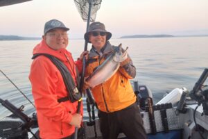 8時30分過ぎに、右竿に大きなアタリがあったので、しゃくってみると根ガカリのような手ごたえです。