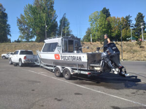 ジェリーの船には何と250馬力のエンジンが搭載されており、周囲が明るくなってからは、全速力でシアトル北側のポイントに向かいます。船の前方が浮き上がり、悪路でカートに乗っているのような凄い揺れが襲います。シアトル北のポイントまで40kmの道のりを1時間近くかけて走ります。