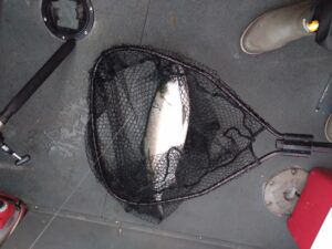 今回、キングサーモン用の竿とリールなので、ロッドとリールのパワーがあって、大型のわりに簡単に取り込めました。